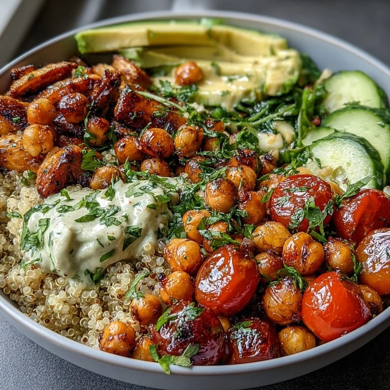 For extra freshness and texture, gently toss the vegetables just before serving to maintain their crispness. If you prefer a nuttier grain flavor, toast the quinoa lightly in the saucepan before adding water. Don't forget to pat the chickpeas thoroughly dry to ensure perfect roasting and maximum crunch.