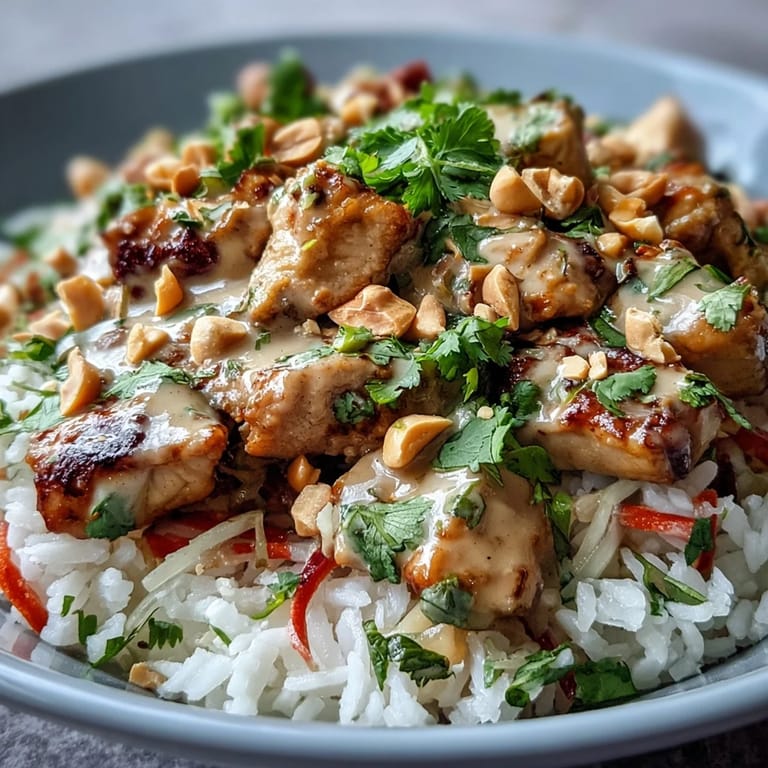 Save Pin There's something about the smell of coconut rice hitting the air that makes me pause whatever I'm doing. One Tuesday afternoon, I was testing this bowl for a friend who'd mentioned wanting something that felt both comforting and energizing, and the moment that fragrant steam rose from the pot, I knew I'd found it. The combination of creamy coconut rice, perfectly seared chicken, and that silky peanut sauce came together almost by accident, but it's become my go-to when I need lunch to feel like an occasion.
