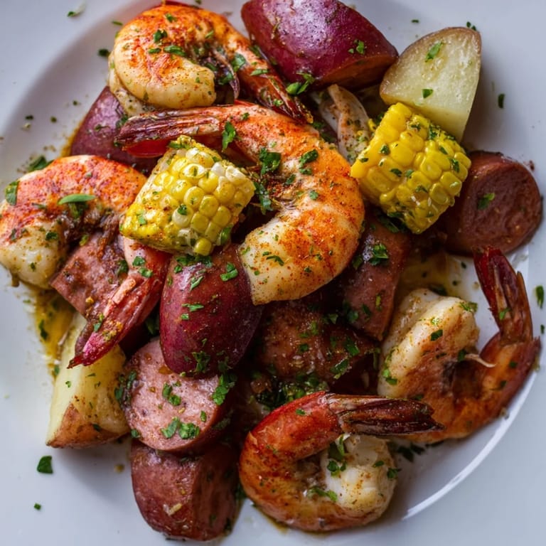 Save Pin Bring the flavors of the Southern coast right to your table with this vibrant Seaside-Inspired Shrimp Boil. This one-pot wonder combines tender shell-on shrimp, smoky sausage, sweet corn, and baby red potatoes, all simmered to perfection in a fragrant blend of Old Bay seasoning and aromatic spices. Perfect for a festive family dinner or a relaxed gathering with friends, this dish invites you to savor the fresh, bold tastes of a classic seafood boil without the fuss of multiple pots.