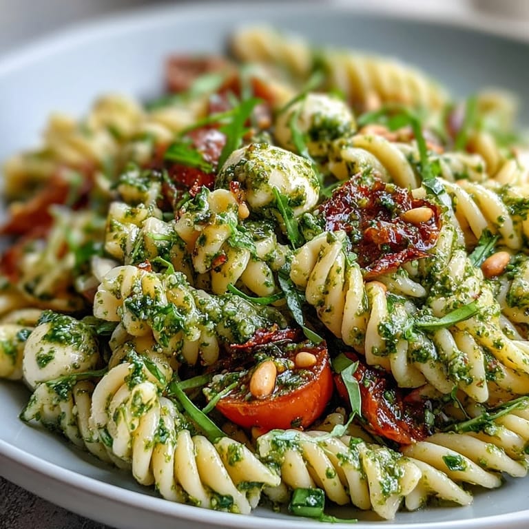 Last August, I whipped up this salad for a quick lunch when friends dropped by unexpectedly, and we ended up chatting around the kitchen island, forks in hand, testing little tweaks like extra lemon zest. Someone spilled a bit of olive oil and we laughed as the dog promptly tried to clean it up—proving the kitchen is always where the fun happens. We ate straight from the mixing bowl, barely bothering with plates, and every forkful felt like a happy accident. That afternoon, the pesto clung to the pasta curves beautifully and the tomatoes were so ripe, you could taste the sun. This recipe became our go-to good mood fix.
