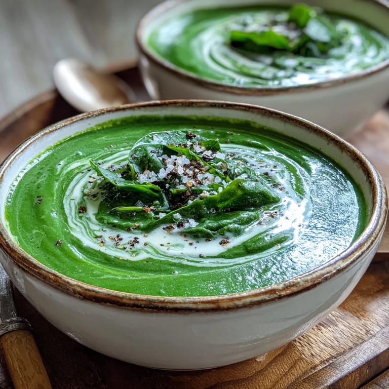 Save Pin There's something almost meditative about watching spinach wilt in a hot pan, the way those leafy bundles transform from rigid and bright to silky and dark in just a few minutes. I discovered this soup on a Tuesday when my farmer's market haul threatened to overflow, and I needed something that would use up that beautiful bunch of fresh spinach before it turned. What started as a practical solution became something I now make whenever I want comfort in a bowl without the heaviness.